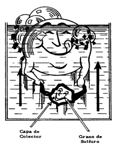 Estos reactivos de flotación se asocian mas a los sulfuros y al aire, pero muy poco a la ganga.