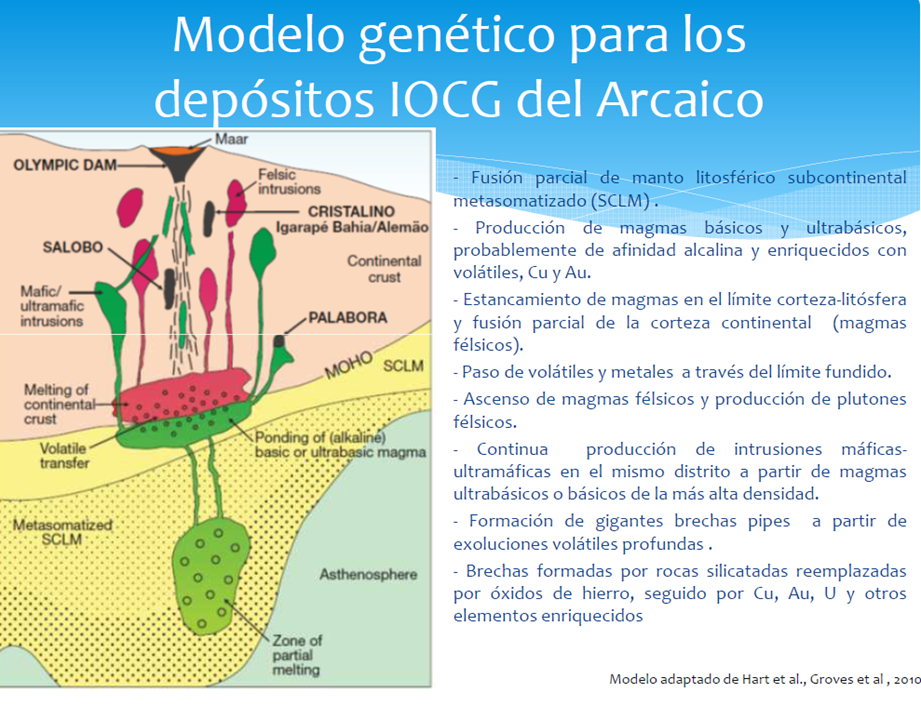 - Producción de magmas básicos y ultrabásicos, probablemente de afinidad alcalina y enriquecidos con volátiles, Cu y Au.